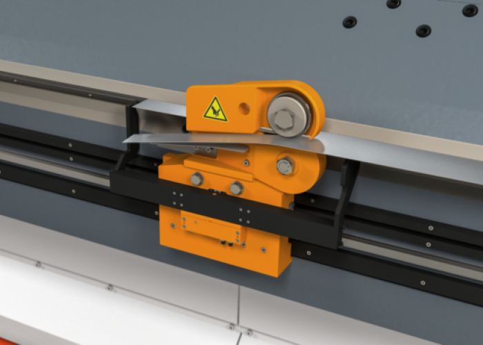 Dorazový systém na všech ohýbacích strojích Jorns je extrémně stabilní a robustní. Dorazové prsty jsou volně pohyblivé po celé délce. U dorazových systémů typu 11 a typu 20 jsou dorazové prsty opatřeny kalenou dorazovou hranou. I když je pracovní proces rychlý, udržují polohu a nejvyšší přesnost polohování +/- 0,1 milimetru. Rychlost nastavení je až 366 mm za sekundu. Dorazový systém typ 11 (automatický) je doplněn o typ 11 (kuželový), který lze přidat při nákupu nebo později na pravé straně stroje.