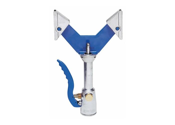 Stroj s otočnou hlavou, rychlospojkou a ručně ovládaným hydraulickým čerpadlem.