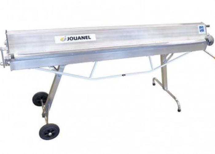 Lehký skládací ruční stroj pro stavbu i dílnu, vyrobený z hliníku, užitečná délka ohýbání 2 m, kapacita zinku: 0,8 mm, kapacita oceli: 0,63 mm, kliková rukojeť pro spuštění nebo složení stroje, 15 mm úzká ohýbací lišta, 80 kg (bez příslušenství).