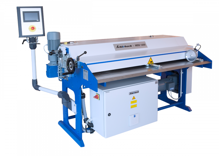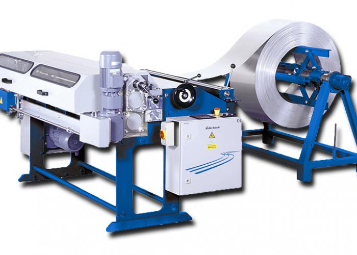 Zařízení pro podélné a příčné dělení plechových pásů do šířky 1.250 mm o síle materiálu max. 1,25 mm.