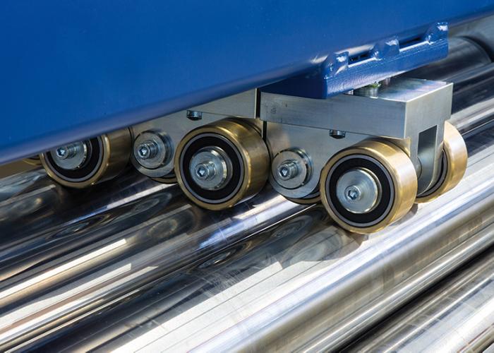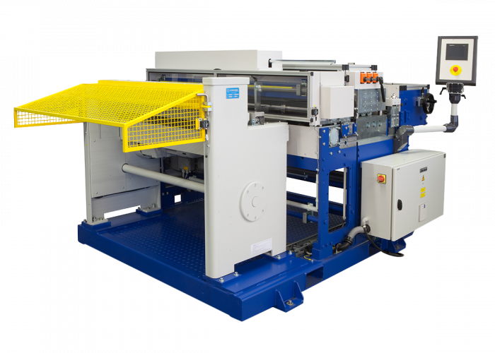 Řezací a řezací systém v průmyslovém provedení pro flexibilní, přesné řezání širokých pásů bez otřepů.